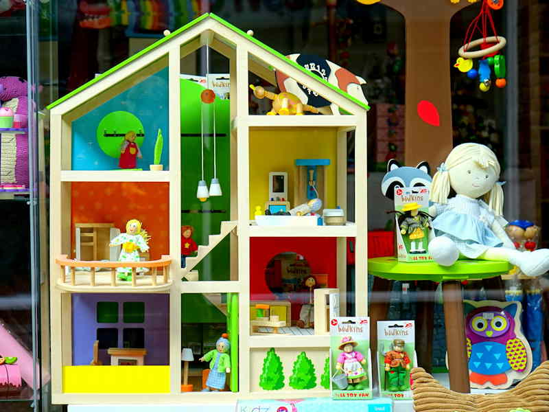 Detailreich gestaltetes Puppenhaus mit Möbelset.